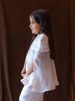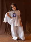The soft sheen of the fabric, paired with intricate handwork detailing, gives this outfit a graceful, dream-like charm — perfect for festive soirées, special celebrations, or when your little one deserves to shine in understated luxury.