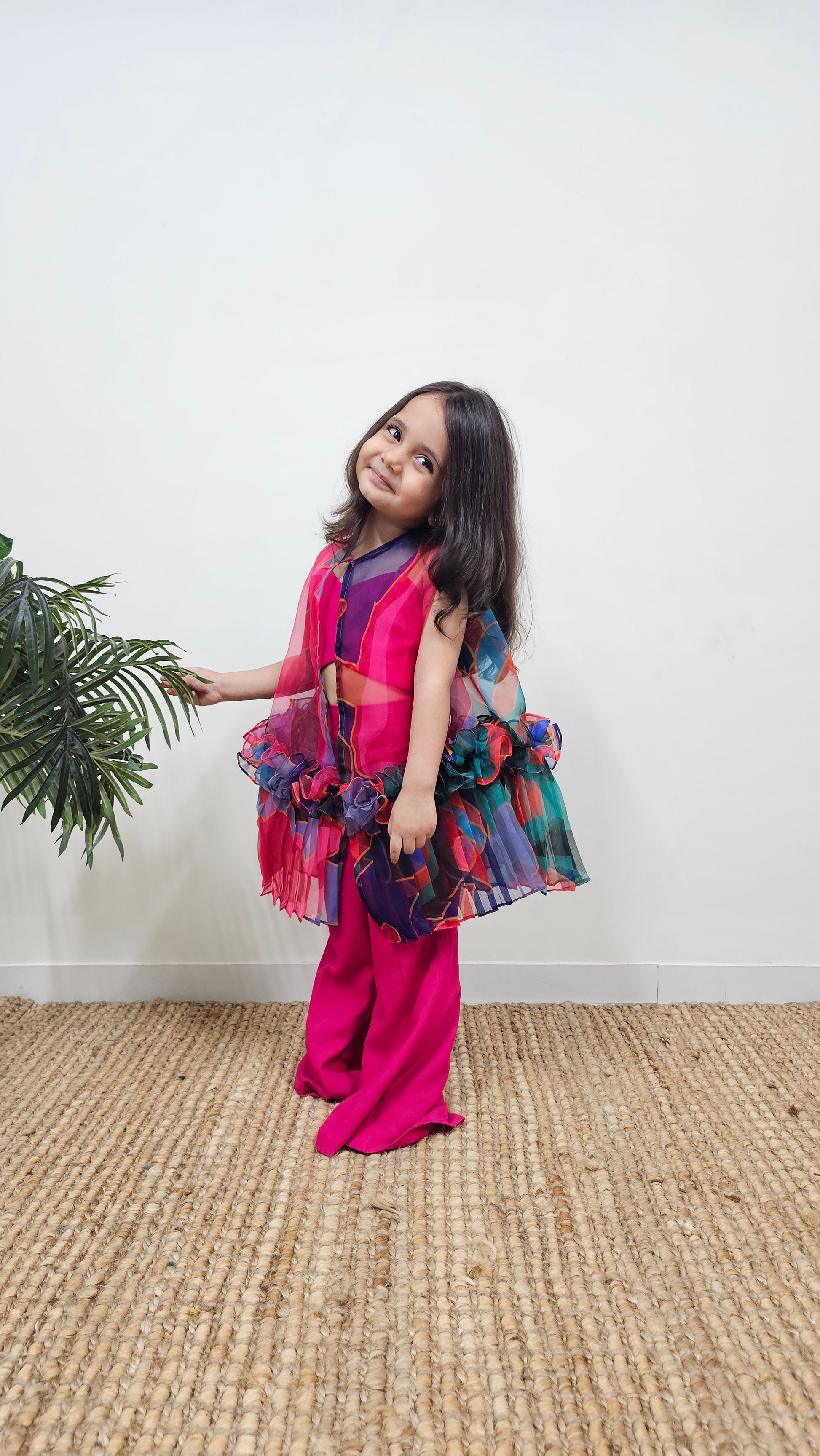 At Ticklingtoe, we believe every child deserves to feel like a star! Let your little one shine in our Pink Bell Bottom Set with Organza Shrug, where fashion meets comfort. ๐ฅฐโจ
